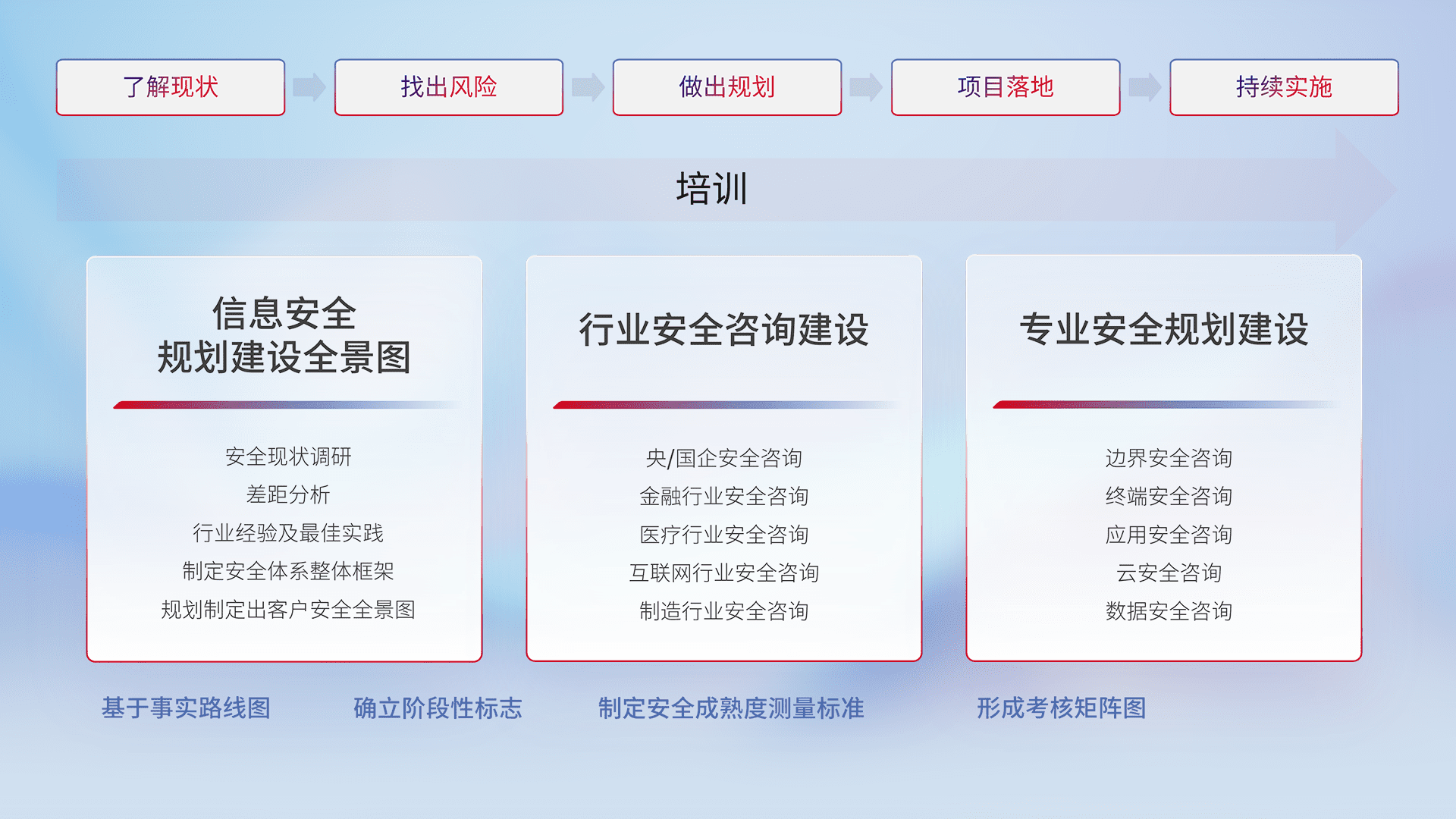 梳理客户信息安全现状调研、、、差距分析结果,,,,结合行业先进经验及最佳实践,,制订客户的信息安全管控体系总结架构,,,,最终形成一个完整的客户信息安全规划与建设的全景图。。