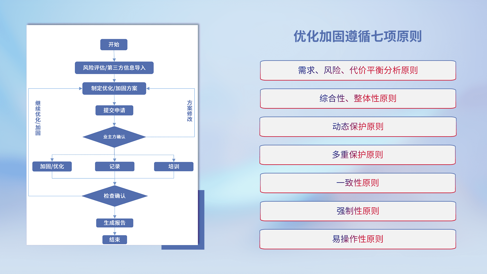 最大程度利用现有资产,,对评估发现的问题进行封堵与整改,,防止漏洞被利用,,提升整体网络安全性,,,为客户带来高标准的优化加固服务。。
