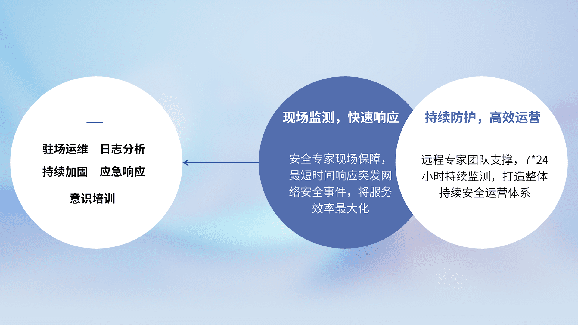 针对客户行业特性,,,提供专属的一站式安全管理服务,,,帮助客户全面感知网络空间威胁,,,,通过安全专家的线上、、、线下防护支持,,,,实现风险闭环,,,,将安全保障常态化,,,,为客户打造常态化安全运维运营服务。。