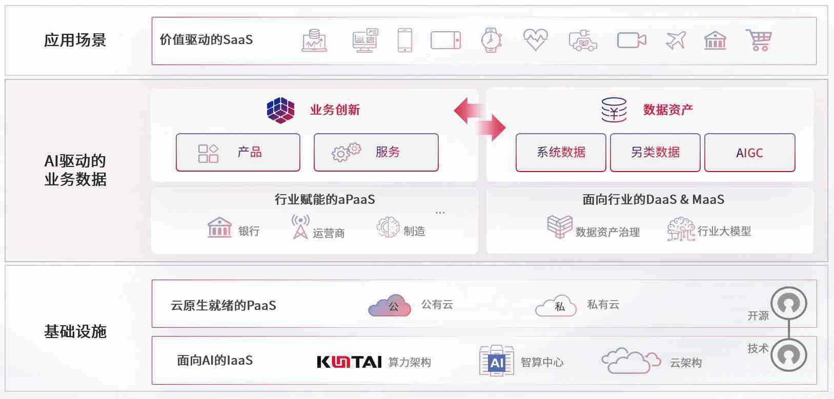 数字时代,,围绕企业数字化转型的关键要素,,,南宫28wd数码开创性的提出数云融合战略和技术体系框架,,,着力在云原生、、、数字原生、、、、AI原生和信创产业上架构产品和服务能力,,为处在不同数字化转型阶段的快消零售、、、汽车、、、金融、、、医疗、、、、政企、、教育、、、、运营商等行业客户提供泛在的敏捷IT能力和融合的数据驱动能力,,,,构建跨界融合创新的数字业务场景和新业务模式,,,助力企业级客户建立面向未来的核心能力和竞争优势,,,,全面推动社会的数字化、、智能化转型升级。。。